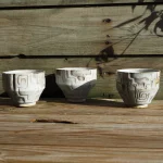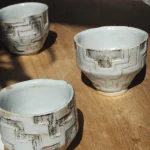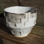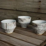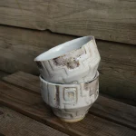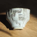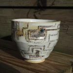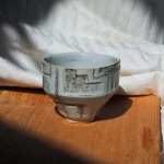 “Samiria” draws inspiration from the traditional Japanese Raku Chawan bowl, reimagined as a sculptural yet functional vessel. Its organic form honors the spirit of ritual and pause, while the surface is hand-carved with Valeria’s interpretation of kené—the intricate visual language of the Shipibo-Konibo people from the Peruvian Amazon. Kené patterns are not merely decorative; they are sacred geometries that represent paths of memory, healing, and connection.