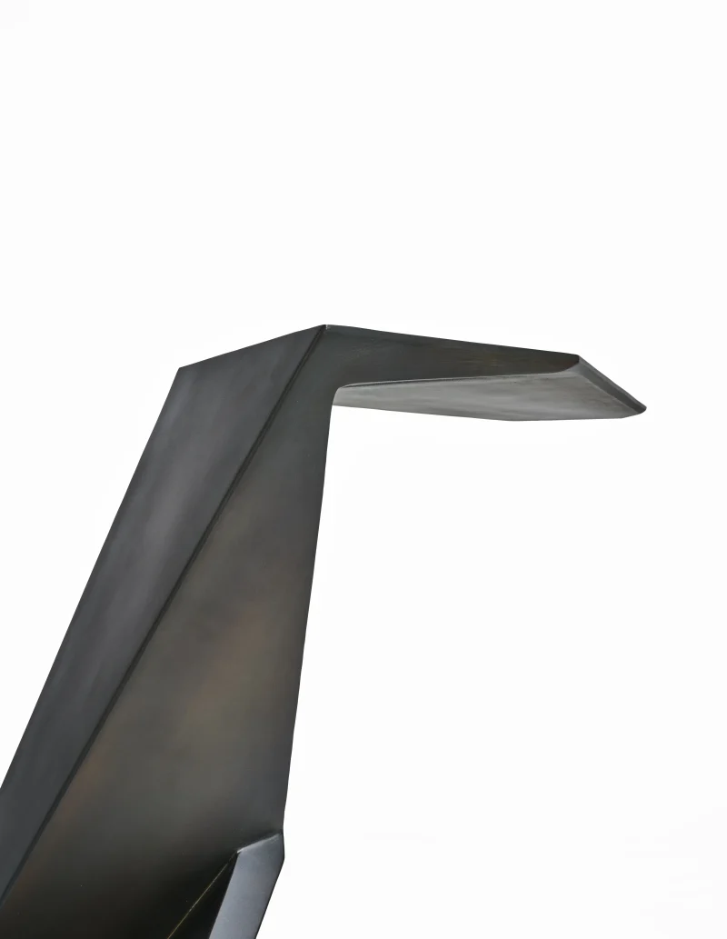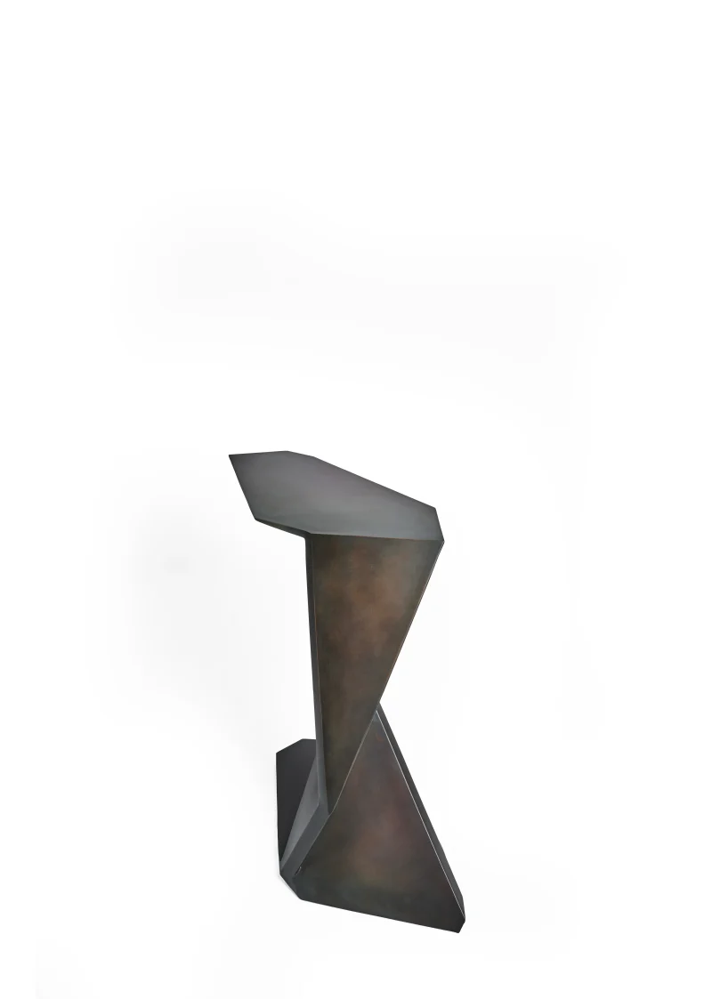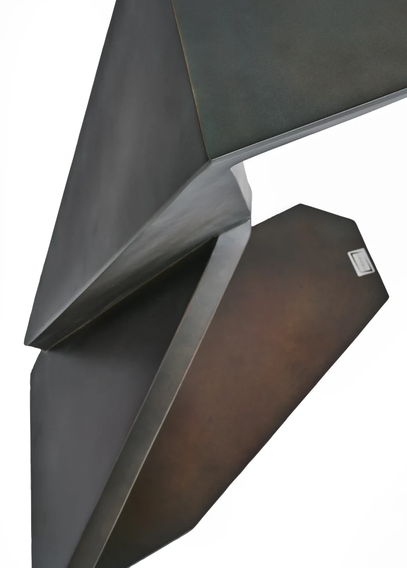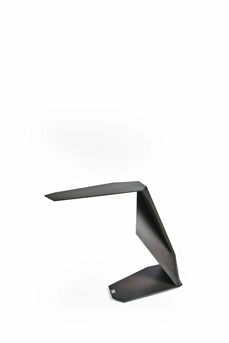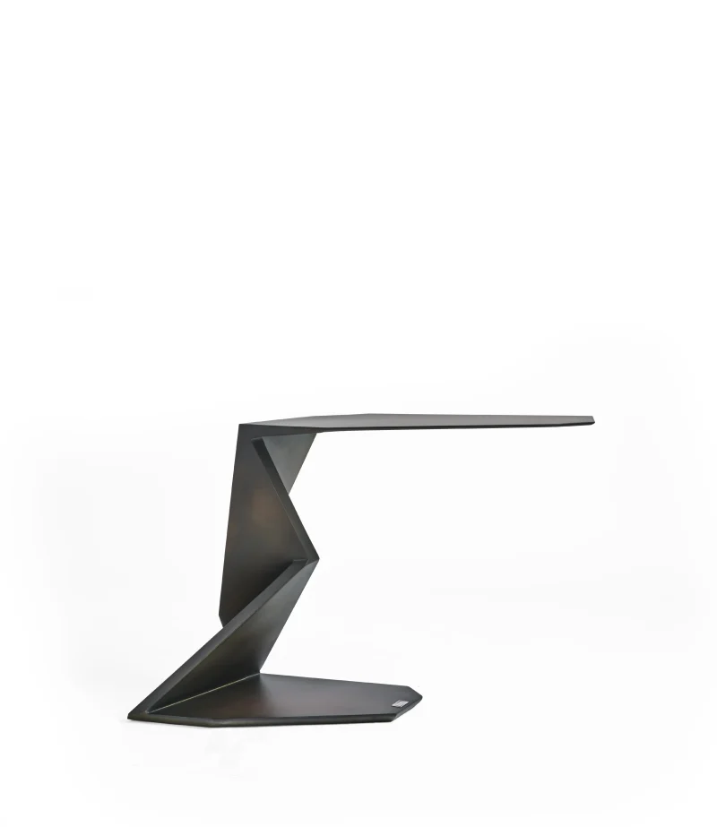 samotraX by ORFEO STUDIO is a console table made entirely of sheet metal composed of connected elements that are completely welded together and polished, the elements that compose it are designed and positioned with a well-defined parametric scheme that ensures a static balance to the piece, the contrast between chiaroscuro declares a poetic and latent style from the geometric prospect, a direct consequence that leads to the independent development of a conceptual design with futuristic lines.