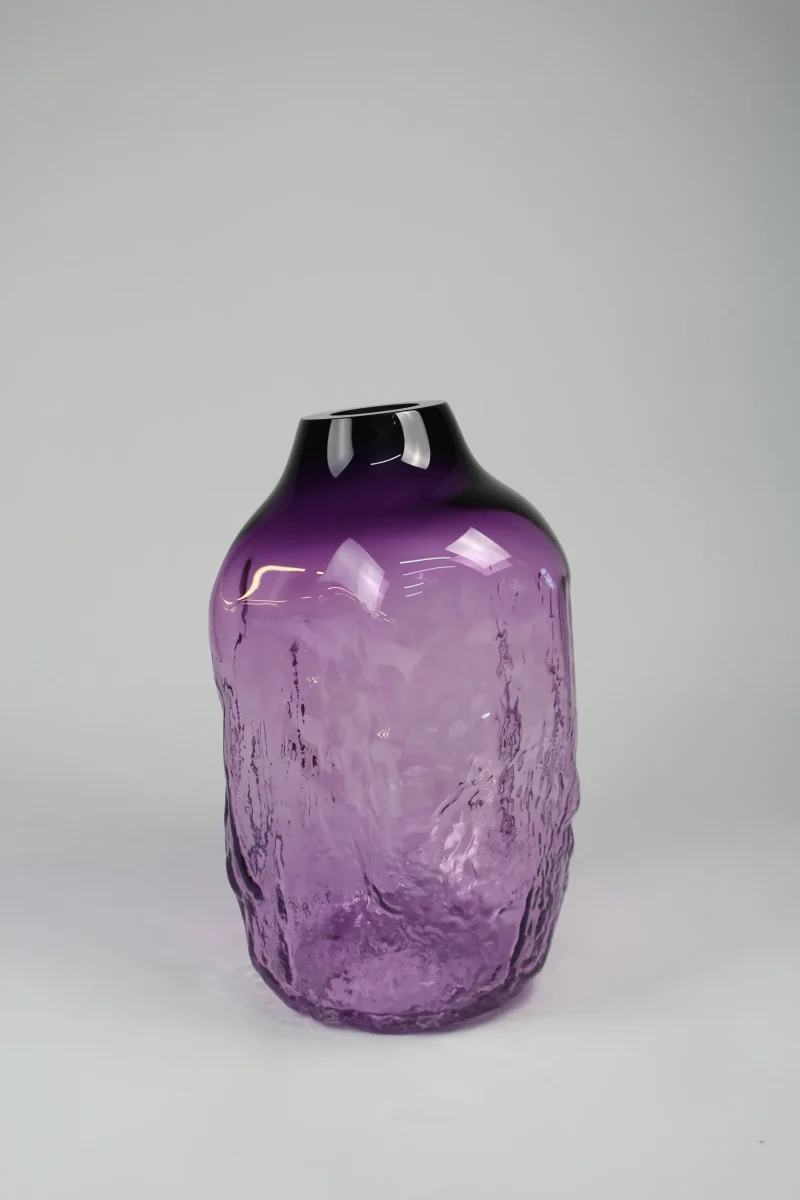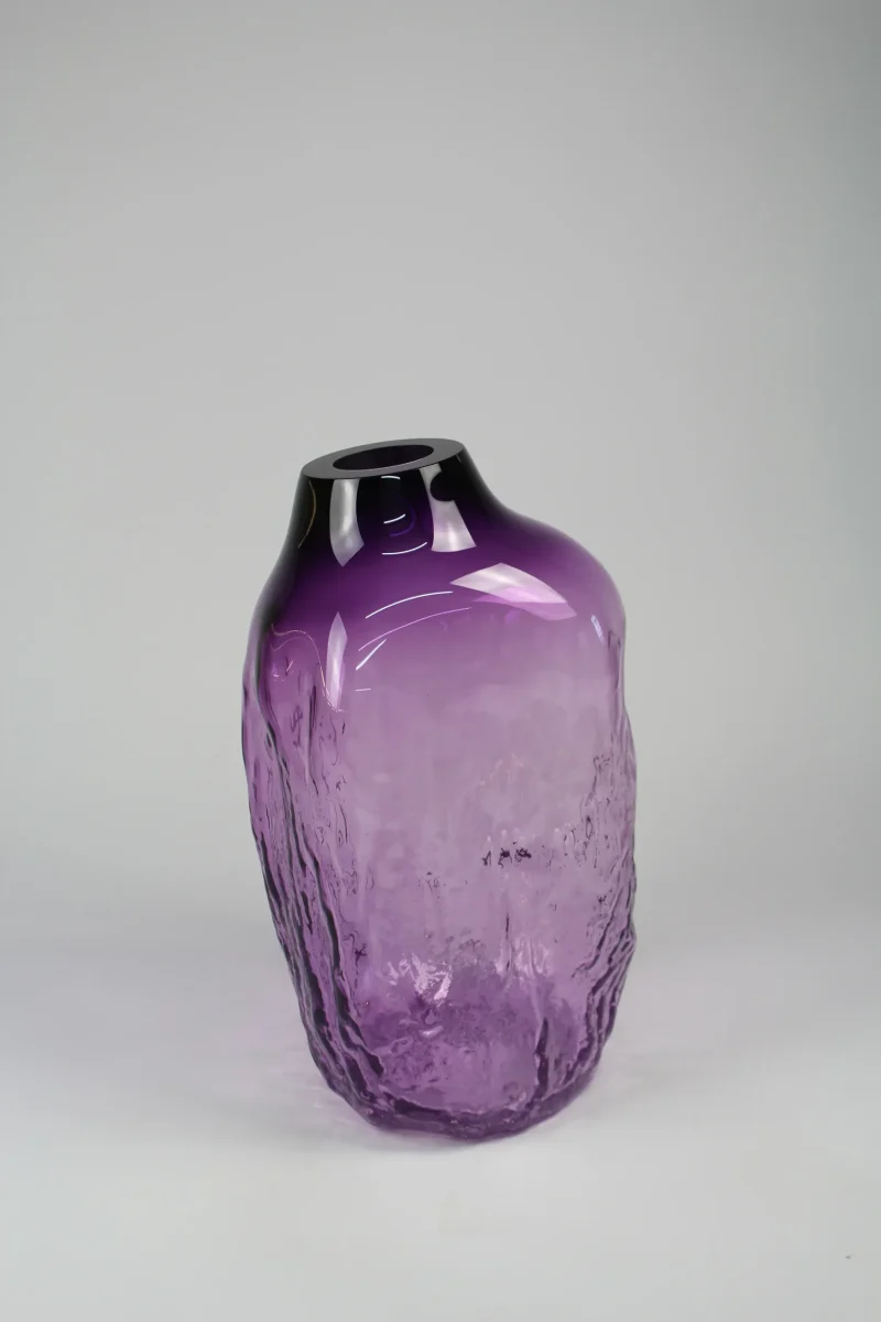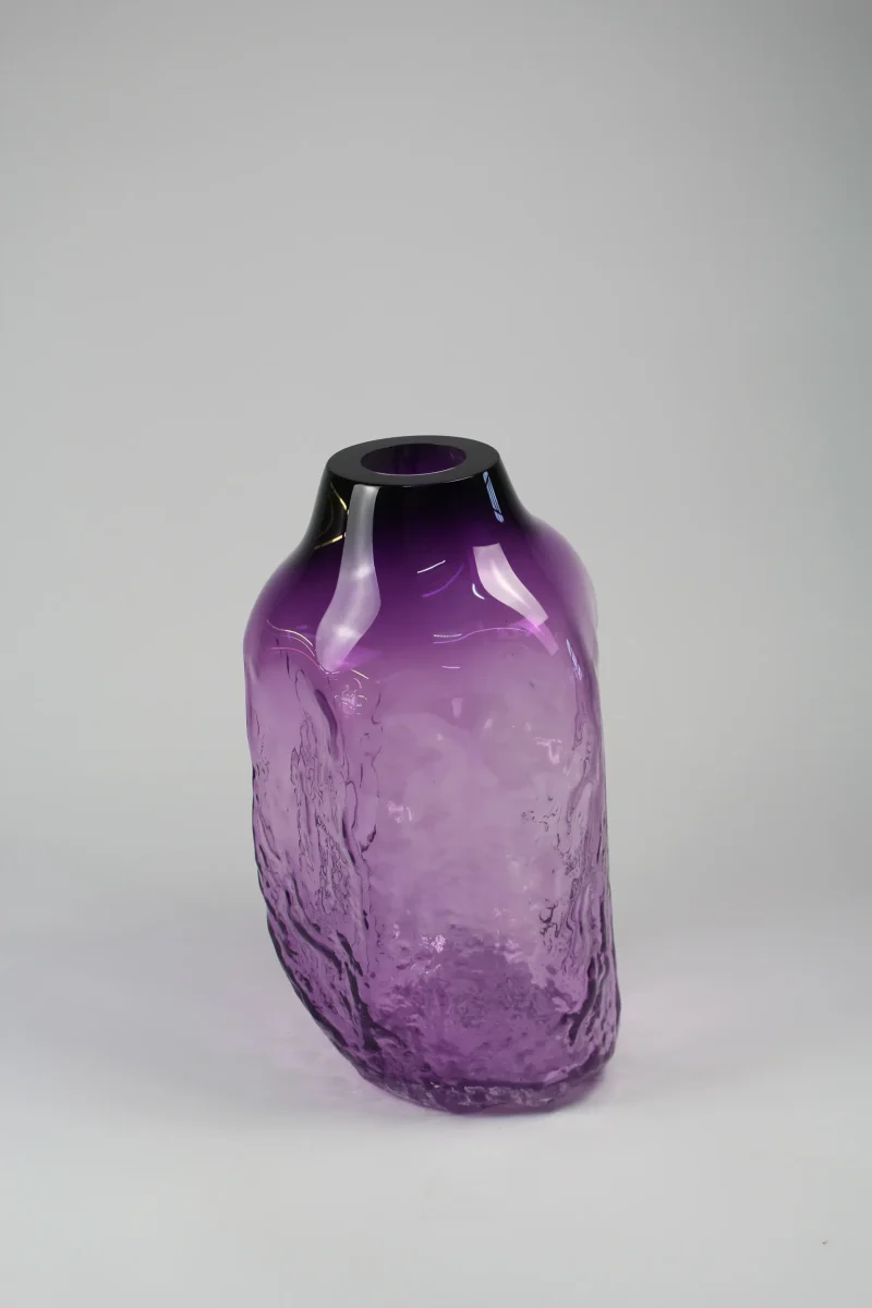 The Sand Series by Vogel Studio redefines the art of glassmaking, combining fluidity and texture to create truly one-of-a-kind pieces. Each piece is crafted by blowing molten glass into oil sand, a material traditionally used in the casting industry. This process captures the rough, crumbly textures of the sand, imprinting them onto the glass and crystallizing into stone-like forms of extraordinary brilliance.