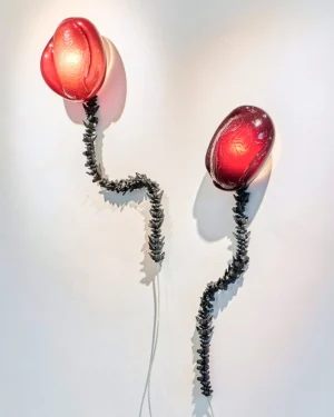To understand Anna Jožová's work, it is essential that she does not work only formally and is not only focused on the visual effect of the work. On the contrary, she always carefully considers and chooses the form based on a given concept based on her natural interest in the surrounding world. This is also linked to a desire to explore and push the boundaries of glass as a creative material and to push its technical possibilities. Experimentation is therefore one of the most important approaches in Anna Jožová's work, thanks to which she finds new ways of working with glass. Combined with the conceptual background of most of her projects, this results in works that are design objects, but the way the artist creates and reflects on them moves them into the realm of free art.