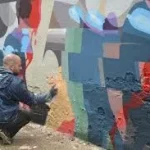 Textile art piece / fashion artefact, co-created by Venezuelan graffiti artist Rafael Gerlach alias SatOne, and Peruvian artisan Norma Vilca de Chavez. Knitted by hand with alpaca fibre.