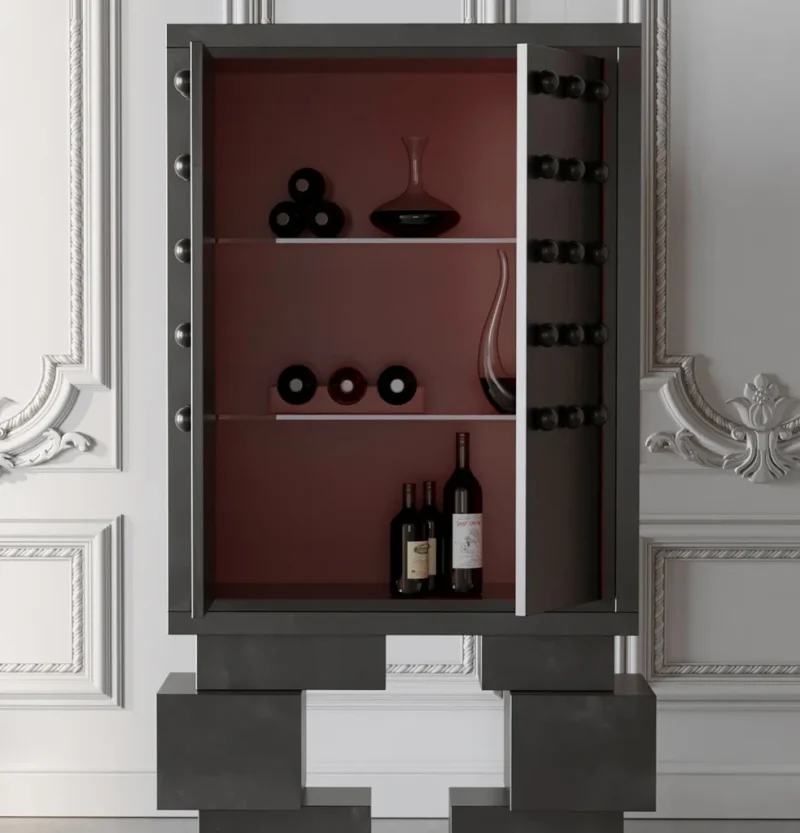 The Sculpt cupboard by hermhaus redefines functional furniture with its sculptural stance and breathtaking details. An attractive design suitable for both bar and multi-purpose cabinets with glass shelves and wine holder details.