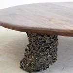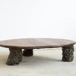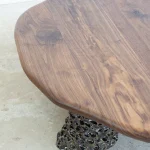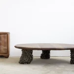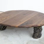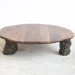 Crafted from premium-quality walnut, the table undergoes a light burning process that accentuates its texture and enhances its natural depth and character. Finished with a protective hard-wax oil, it achieves a smooth, lustrous surface that preserves its durability while maintaining a warm, tactile feel. This coffee table is a timeless statement of artisanal expertise, perfect for adding elegance and individuality to any space.