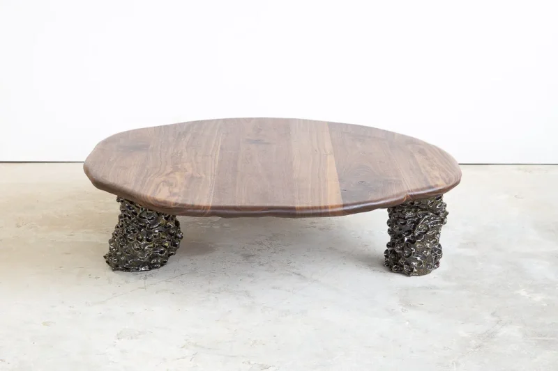 Crafted from premium-quality walnut, the table undergoes a light burning process that accentuates its texture and enhances its natural depth and character. Finished with a protective hard-wax oil, it achieves a smooth, lustrous surface that preserves its durability while maintaining a warm, tactile feel. This coffee table is a timeless statement of artisanal expertise, perfect for adding elegance and individuality to any space.