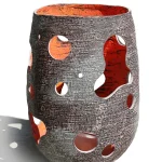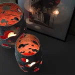 This is a dual-purpose decorative object. By day, it functions as a sculptural interior piece. At night, when a candle is placed inside, it becomes an atmospheric lantern, casting a subtle play of light and shadows.