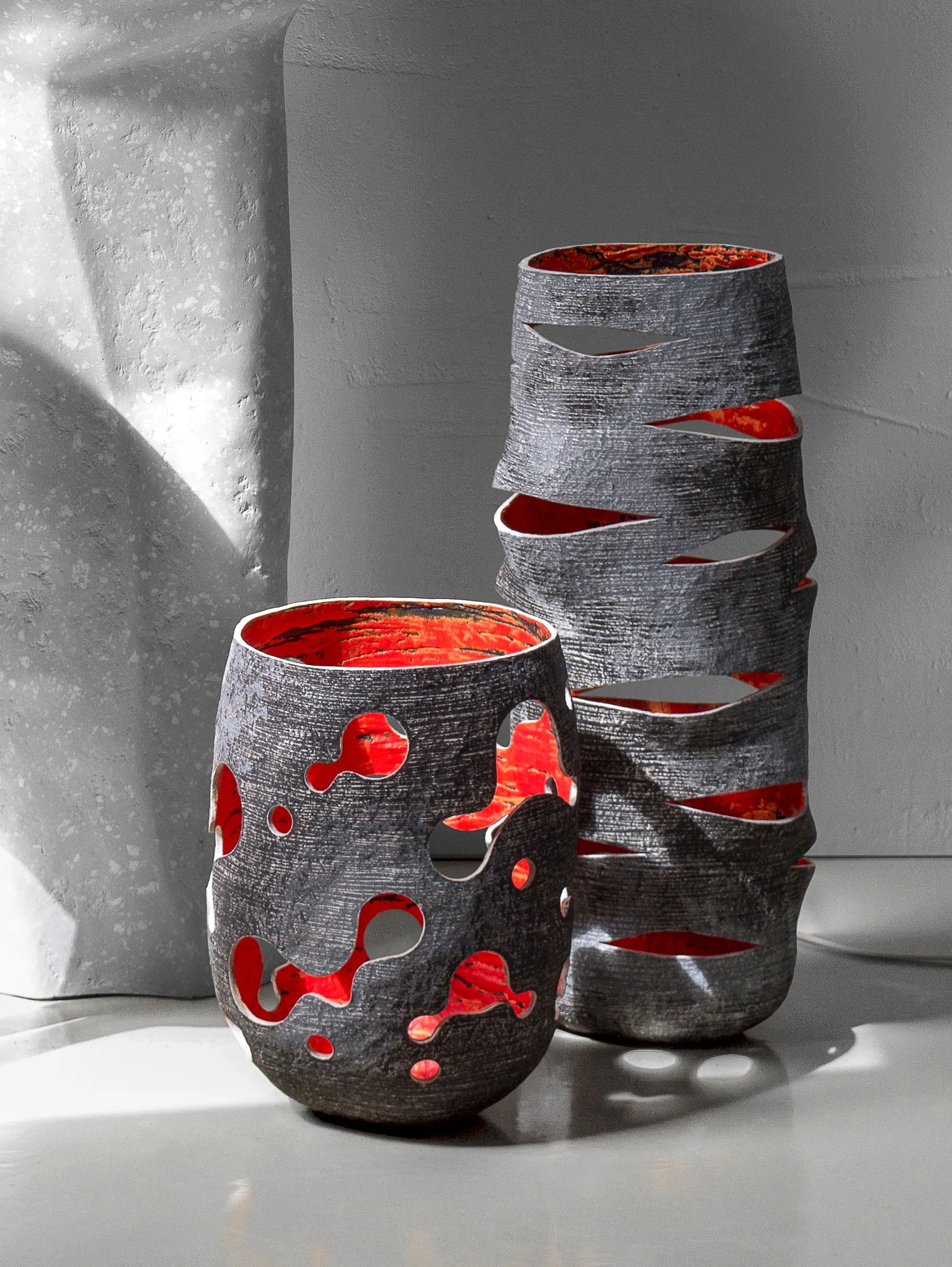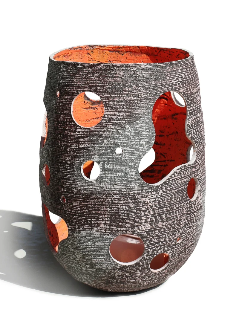 This is a dual-purpose decorative object. By day, it functions as a sculptural interior piece. At night, when a candle is placed inside, it becomes an atmospheric lantern, casting a subtle play of light and shadows.