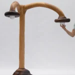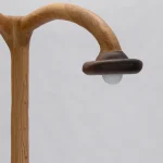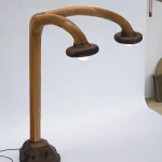 This sculptural floor lamp by Alexander Knysch Studio is a striking testament to artisanal craftsmanship, meticulously hand-shaped to embody the timeless elegance of traditional woodworking techniques. Its sculptural design is defined by a seamless, flowing form, free of sharp edges or corners, creating a harmonious and organic silhouette that exudes sophistication.
