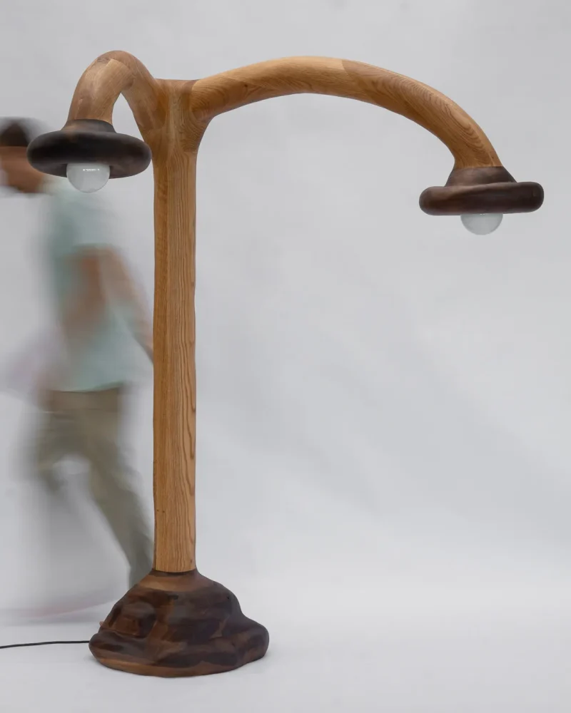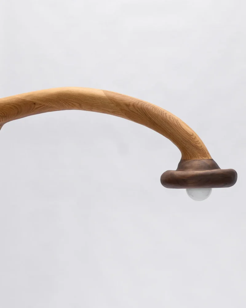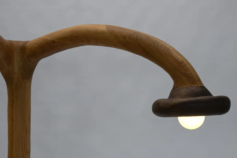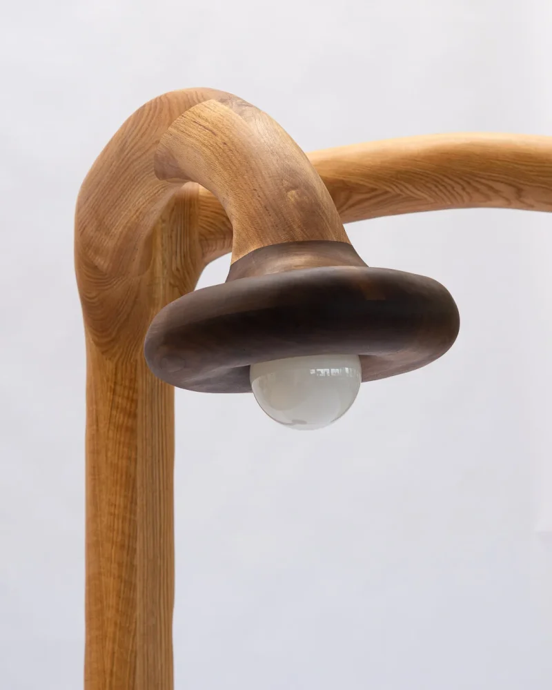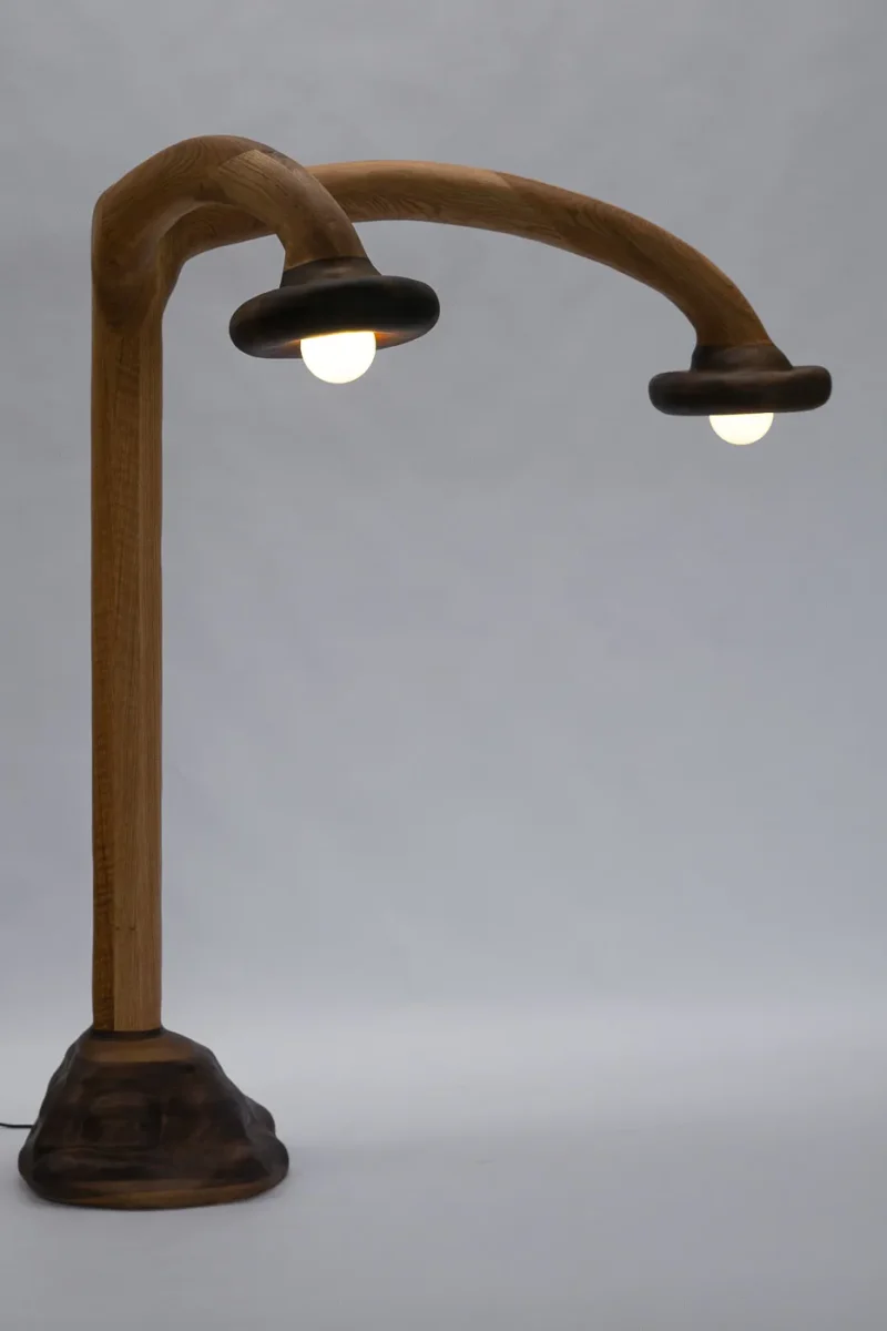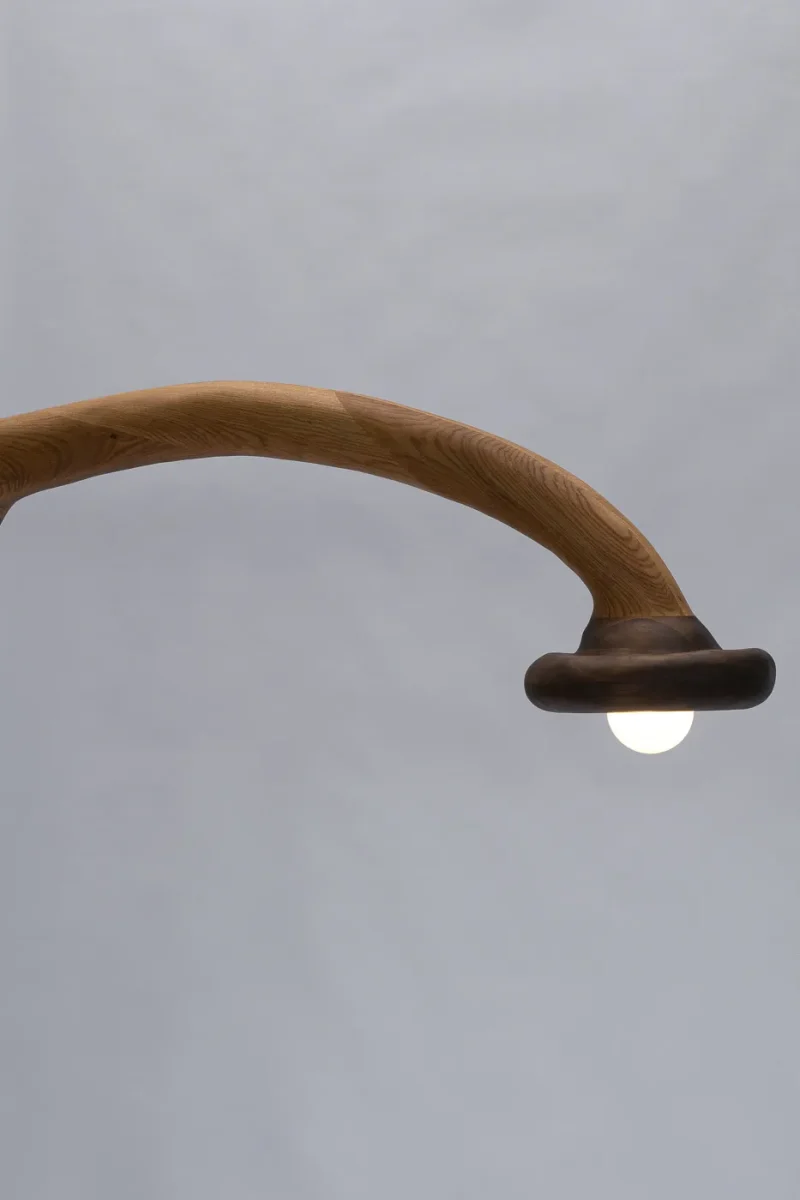 This sculptural floor lamp by Alexander Knysch Studio is a striking testament to artisanal craftsmanship, meticulously hand-shaped to embody the timeless elegance of traditional woodworking techniques. Its sculptural design is defined by a seamless, flowing form, free of sharp edges or corners, creating a harmonious and organic silhouette that exudes sophistication.