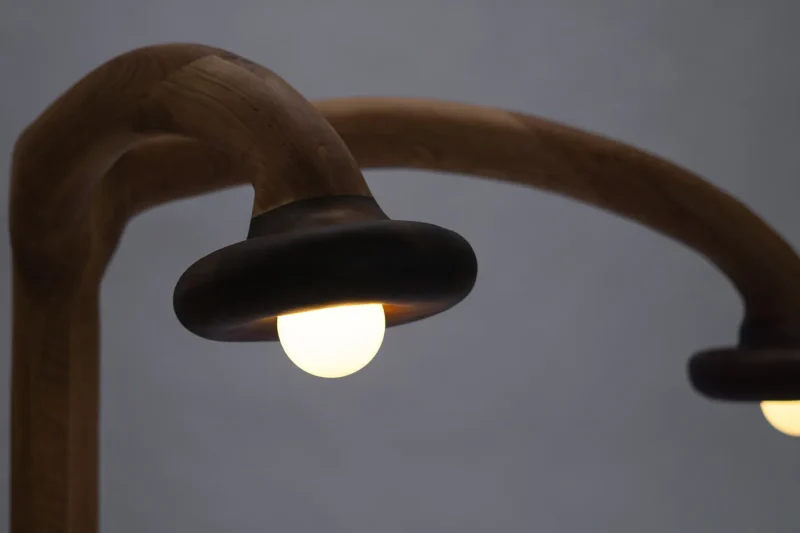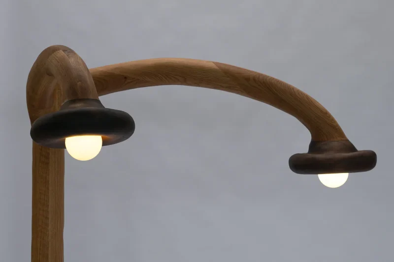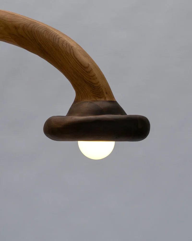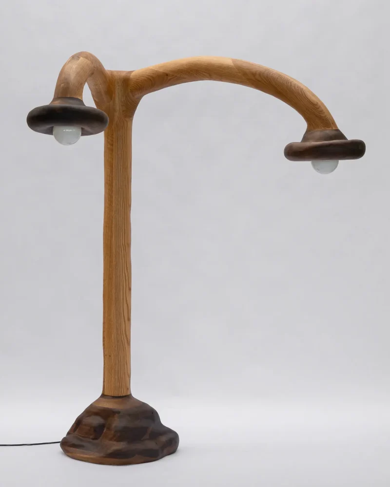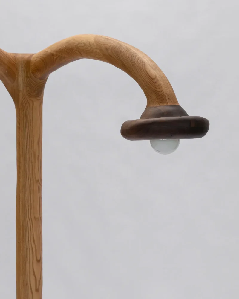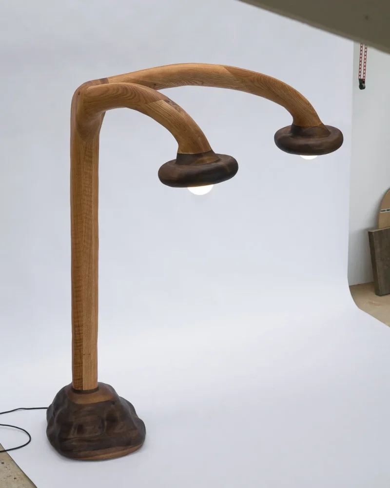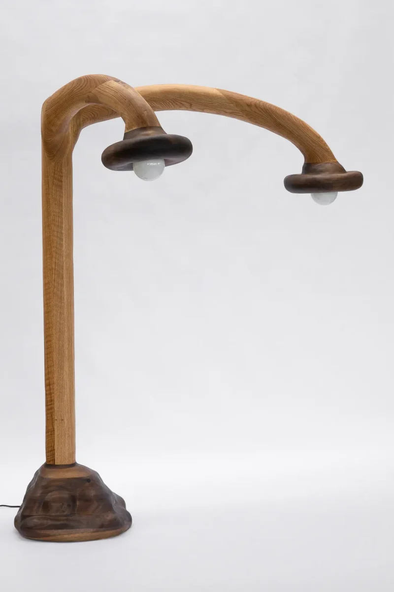 This sculptural floor lamp by Alexander Knysch Studio is a striking testament to artisanal craftsmanship, meticulously hand-shaped to embody the timeless elegance of traditional woodworking techniques. Its sculptural design is defined by a seamless, flowing form, free of sharp edges or corners, creating a harmonious and organic silhouette that exudes sophistication.