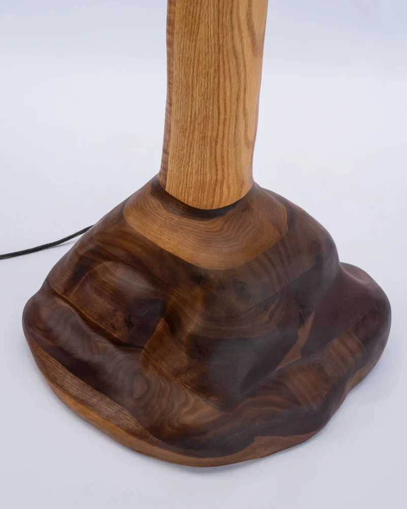Crafted from premium red oak and walnut wood, the lamp showcases the rich textures and natural beauty of these materials. Finished with a natural hard-wax oil, it offers both protection and a silky, matte finish, preserving the wood’s authentic appearance and tactile warmth while ensuring durability for everyday use. This floor lamp is not just a functional light source but a refined piece of art that brings character and elegance to any interior.