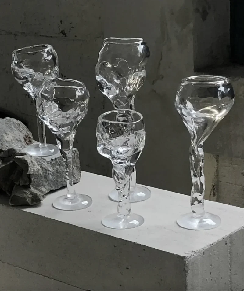 These exquisite glass sculptures are the brainchild of Aleksandra Zawistowska and her skilled team of artisans. Each piece is a testament to their dedication to experimental craftsmanship. The glass is shaped into unique, unpredictable forms through a process that incorporates natural elements like stones and ceramics. This method gives each sculpture a raw, organic quality that stands out in its earthiness and originality.