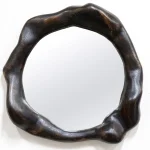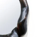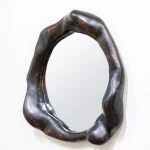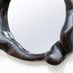 This mirror by Alexander Knysch Studio is a testament to artisanal craftsmanship, featuring a meticulously shaped frame crafted using an array of hand tools. Each piece boasts a unique character, highlighted by its distinctive wood grain patterns. Made from premium-quality oak, the frame undergoes a careful process of light burning to enhance its natural texture, followed by a finish of durable hard wax oil that adds both warmth and resilience. Designed for elegance and functionality, the mirror is securely mounted on the wall using a discreet, wall-mounted fixture, blending timeless design with practical sophistication.