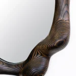 This mirror by Alexander Knysch Studio is a refined masterpiece of artisanal craftsmanship, featuring a meticulously hand-shaped frame that celebrates the artistry and precision of traditional techniques. Crafted from premium-quality oak, the wood undergoes a light burning process to enhance its natural texture and depth, followed by a protective hard wax oil finish that imparts a soft, elegant sheen and lasting durability. Designed for seamless installation, the mirror is easily mounted on the wall using a discreet wall-mounted fixture, combining timeless design with functional sophistication to elevate any interior.