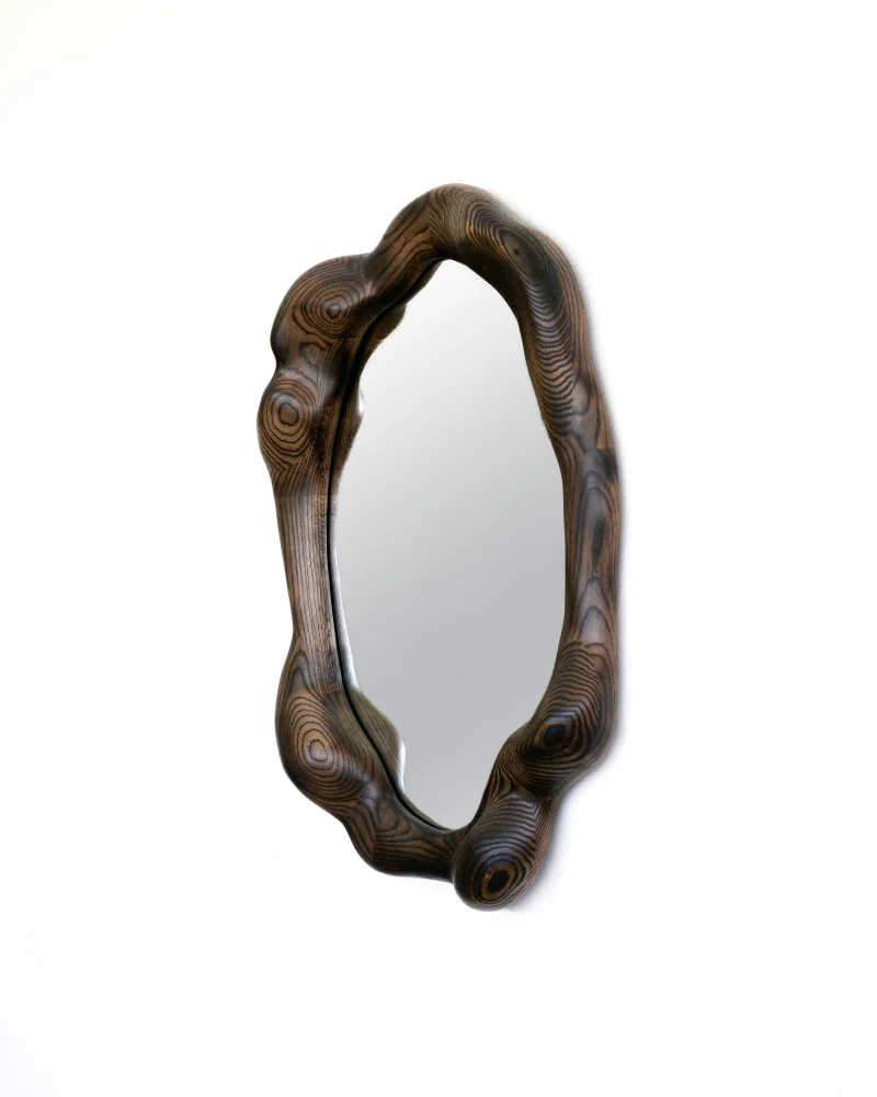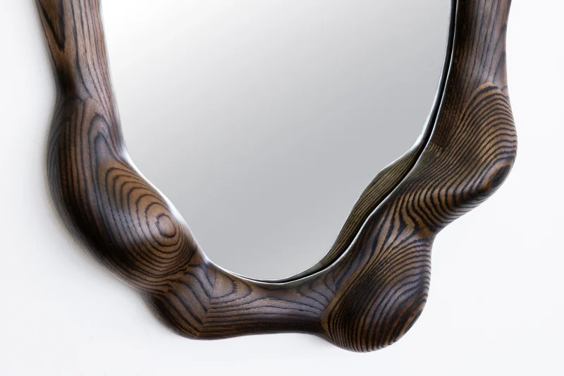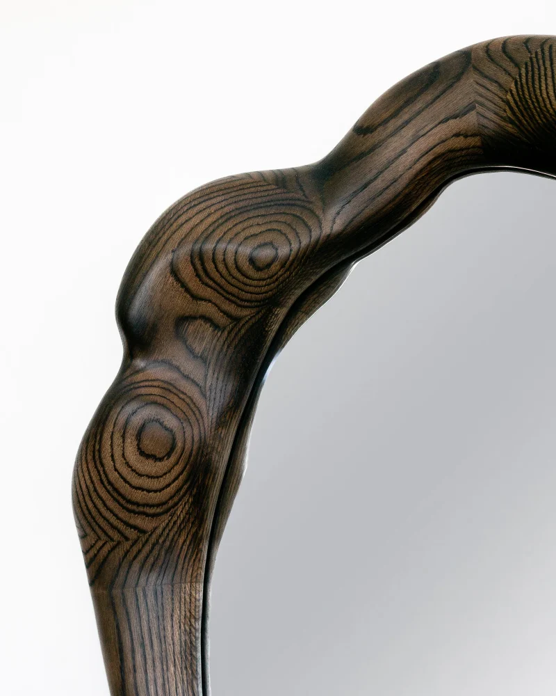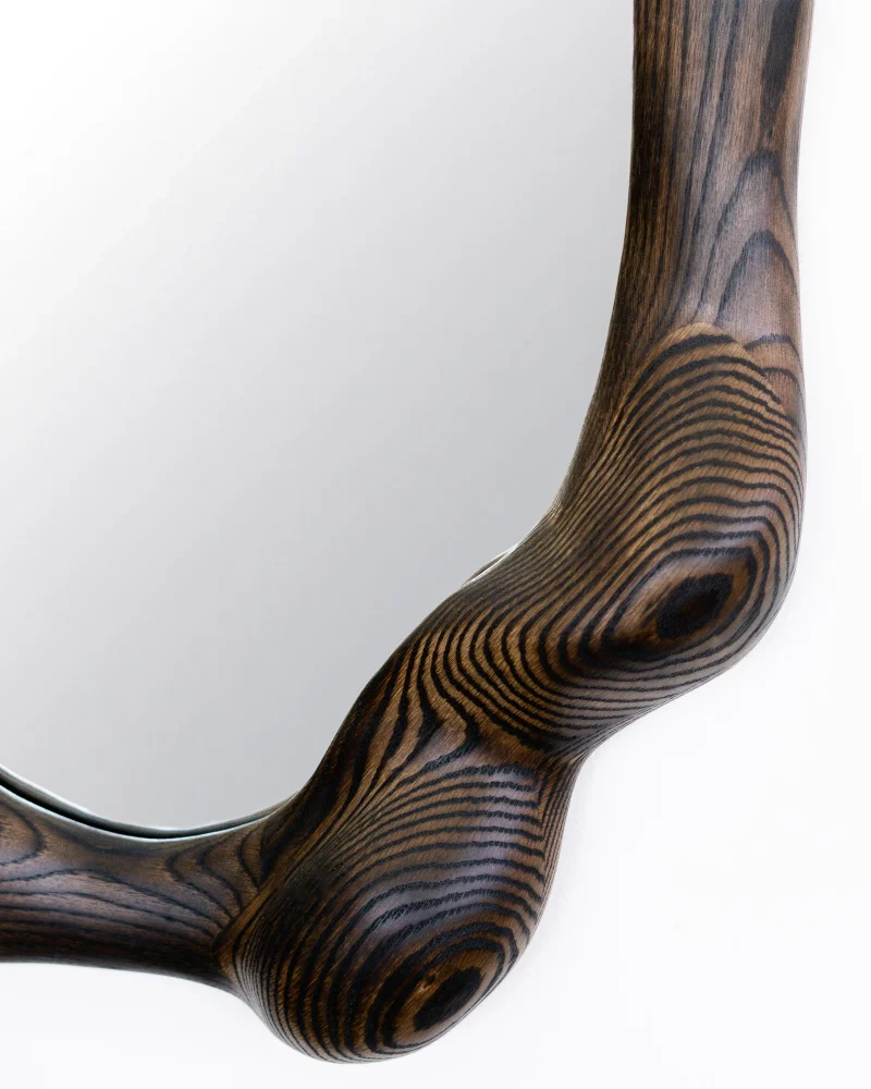 This mirror by Alexander Knysch Studio is a refined masterpiece of artisanal craftsmanship, featuring a meticulously hand-shaped frame that celebrates the artistry and precision of traditional techniques. Crafted from premium-quality oak, the wood undergoes a light burning process to enhance its natural texture and depth, followed by a protective hard wax oil finish that imparts a soft, elegant sheen and lasting durability. Designed for seamless installation, the mirror is easily mounted on the wall using a discreet wall-mounted fixture, combining timeless design with functional sophistication to elevate any interior.