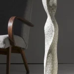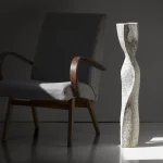 The material from which the vase is made is the result of various experiments. It is a mixture of several components: the largest part being paper pulp and cardboard. Although paper is often associated with fragility, when mixed with other materials and dried, it acquires the properties of wood, a natural texture, becomes strong, but is slightly elastic, so it does not split or crumble.
