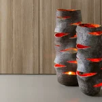 This is a dual-purpose decorative vase. By day, it serves as a sculptural adornment for the interior, and at night, when the candle inside is lit, it transforms into a lantern, casting a breathtaking play of light and shadows.