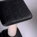 It combines functionality with style through its sculptural design, which adds a statement touch to a sitting area while providing practical utility.