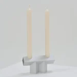 The sculpture candleholder distills light and form to their essence. Clear contours meet the gentle movement of the flame- a quiet dialogue between stillness and motion, cold and warmth. Every surface is intentional. Light and shadow unfold in subtle interplay. The flame is not restrained but welcomed- fleeting, raw, dancing freely across the structure. The candleholder transforms the act of illumination into a quiet ritual, where the flame animates the geometry, bringing softness to the sharp and presence to the void. More than a functional object, it becomes a quiet gesture that connects space, light, and moment.