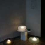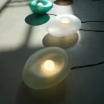 This soothing soft light object is crafted upon your order especially for you. Each mouth-blown table or floor light object is made by hand and smoothed by sand for a super soft natural finish. A regular generous matte light bulb is sunken in the glass body to radiate an atmosphere of calmness and minimalist naturalism.