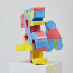 “Secondary Splash Light” is a table lamp that is part of the “Dazzling Lights” and “Storage Solutions”. It is the translation of a 2D drawing from Hugo Béhérégaray into a 3D cardboard shape that is later transformed into a lamp. Once the shape is complete, Diego Faivre starts to play around with the colour and the reflection resulting in a primary coloured table lamp.