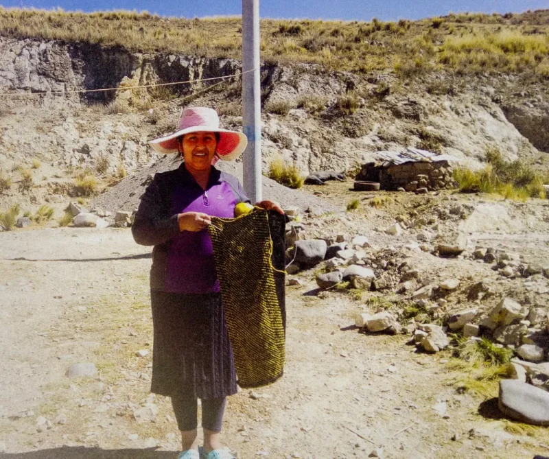 This product is crafted with care and mastery by one woman, alpaca herder and artisan from the Andean highlands in southern Peru. She uses the precious yarn from her own animals and the whole realization process is done by hand and with heart, from the spinning, to the dyeing, and knitting. She also introduces her personal stamp on the design. Please take note that this artisanal procedure could generate small alterations, making your piece unique.