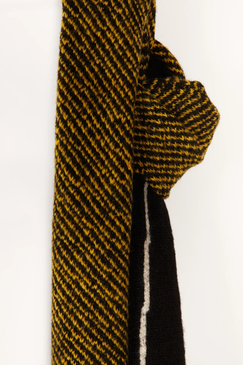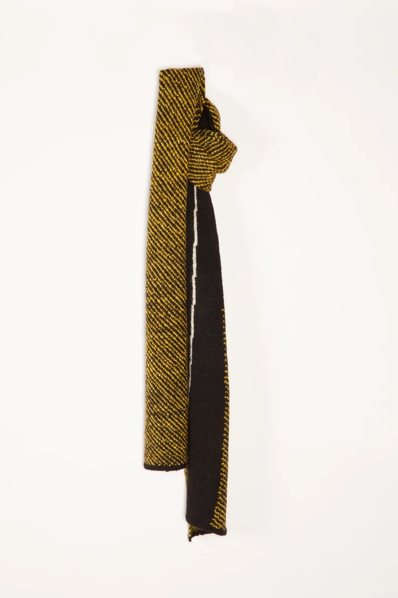 Textile art piece / fashion artefact. Co-created by Polish street artist Seikon and Peruvian artisan Patricia Perca Calisaya. Knitted by hand with alpaca fibre.