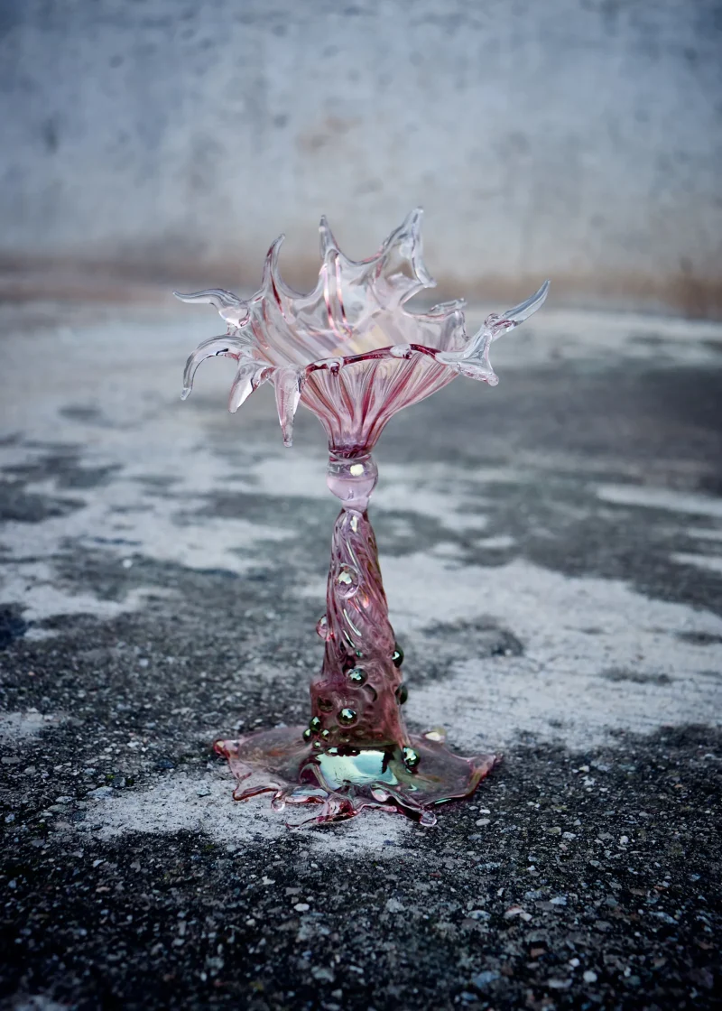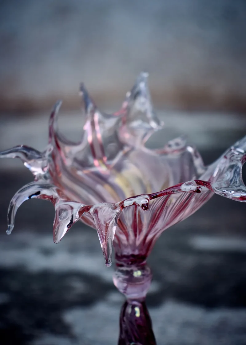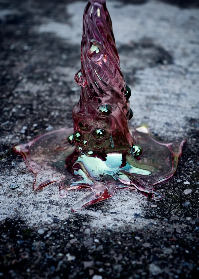 Self Dissolution ~ Glass sculptures that drip, melt, and transform into the unknown. Shaped by the cycles of nature, each piece captures a moment of tension between the dissolution of the self and the creation of something new. They exist in an ambiguous state of flux. Is this an era of ruin or renewal? Are they disintegrating or emerging? These pieces fracture or coalesce, depending on the eye that beholds them. The answer shifts, like the glass itself.