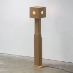 Unique piece / 150x20x20 / Brown Oak / G9 LED under satin glass globe / Assembled with beech dowels.