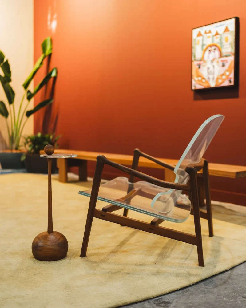 The Serena Side Table by Prosa is a minimalist piece designed to harmonize seamlessly with the armchair from the same collection. Its clear glass top embodies the concept of lightness, resulting in a table that is both sculptural and understated.