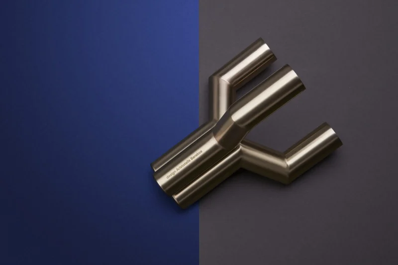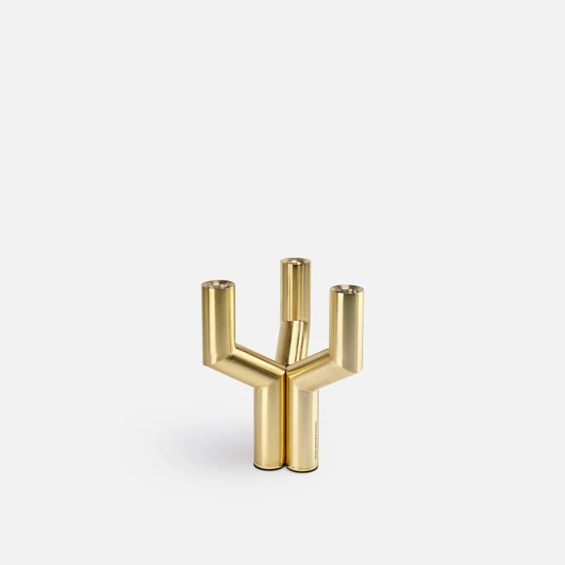 “Sermon” is inspired by the Brutalist architectural movement, which emerged in the 1950s, and the raw, simple forms, exposed materials, and structural elements of its buildings. It consists of three identical parts of welded brass tubes which are connected at their base with a fourth part.