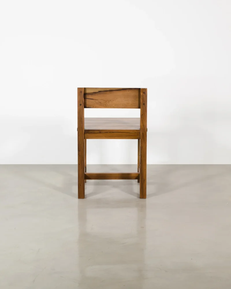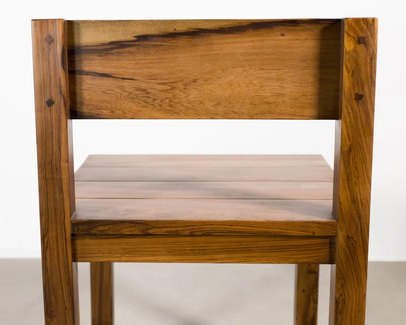 Part of the Serrano family, this chair pays tribute to master artist and designer Donald Judd. Shown in Argentine Rosewood, it can be made in any solid wood and specified for indoor or outdoor use.