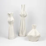 The Kawa Series is crafted using an unusual, painstakingly refined technique unique to Luft Tanaka. Each creation begins as a simple sketch and transforms into a leather mold. After cutting, sewing, and preparing the mold for casting, liquid porcelain is poured inside, slowly forming a thin layer along the leather surface. Once the porcelain sets, the mold is carefully cut at the seams and gently peeled away, allowing the piece to be fired in a kiln.