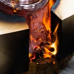 The making process is a captivating synergy of elements — the tiniest details of a momentary structure of burning wood are captured with molten hot glass, continuously changing shape.