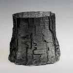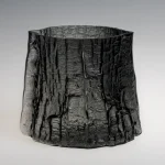 sculptural glass vase with wooden texture, volume IV