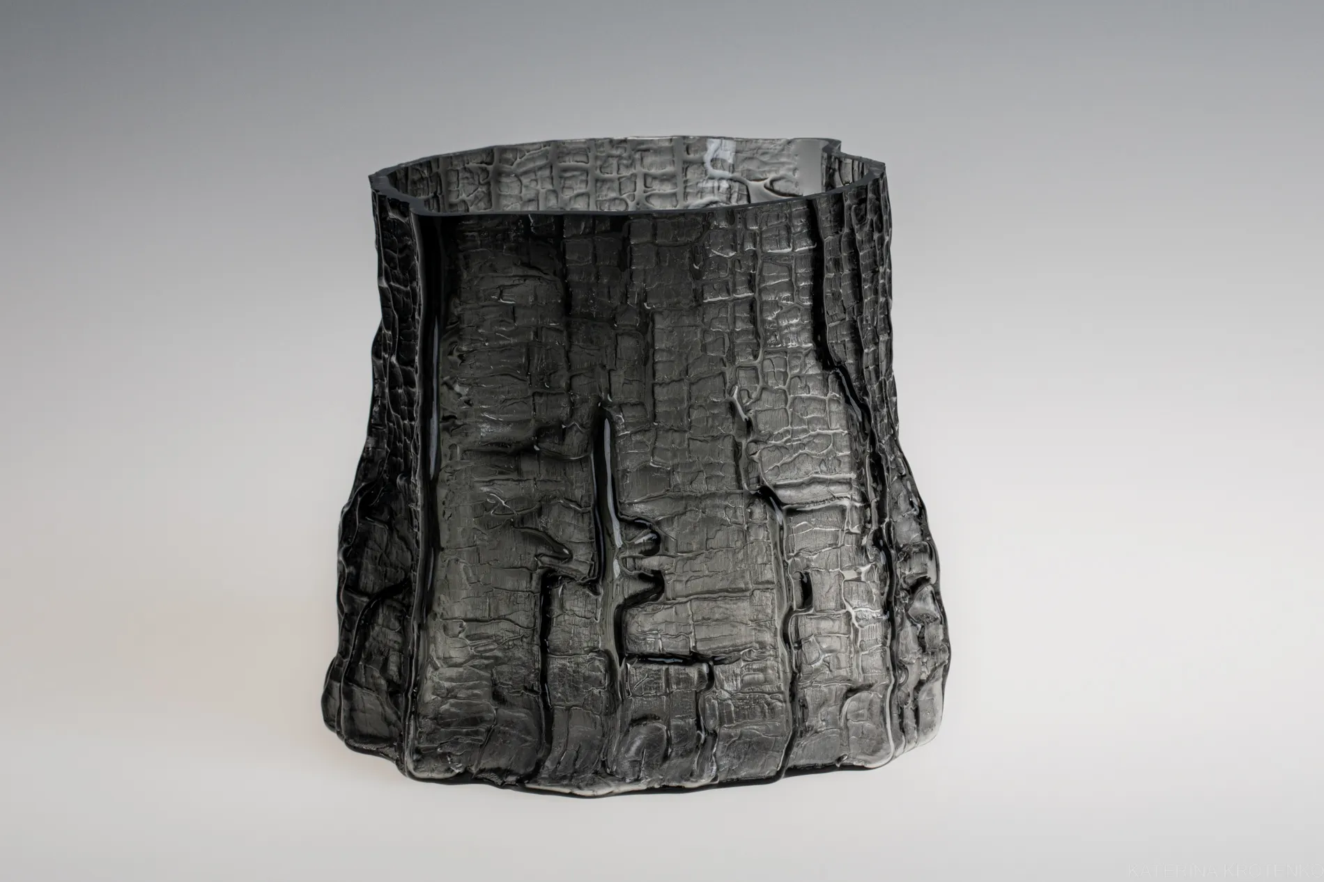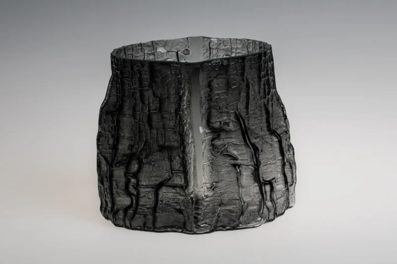 The making process is a captivating synergy of elements — the tiniest details of a momentary structure of burning wood are captured with molten hot glass, continuously changing shape.