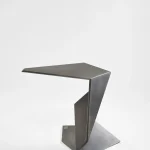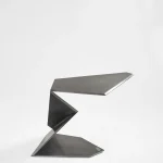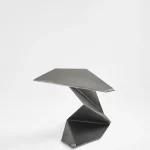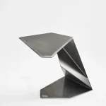This coffee table by ORFEO STUDIO is made entirely of sheet metal composed of elements connected to each other from beginning to end by a single line without interruption completely welded together and polished, the elements that compose it are designed and positioned with a well-defined parametric scheme that ensures a static balance to the piece, the direct consequence leads to the development independently a conceptual design with futuristic lines.