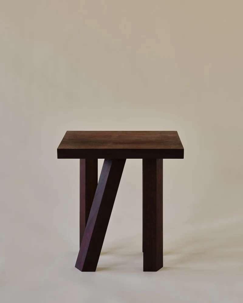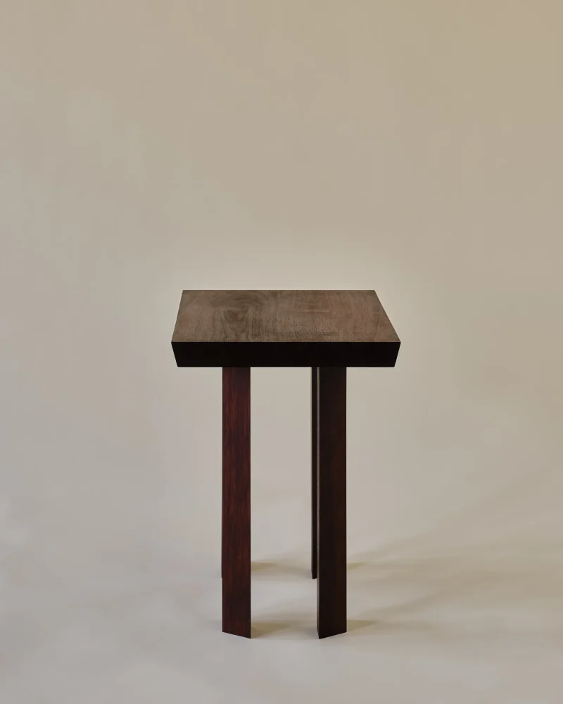 Angular table leg Asymmetrical side table Autumnal Design Beetroot walnut wood Brutalist Contemporary side table Geometrical side table Minimalist Mock studio Side table Walnut side table Walnut wood