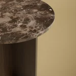 The Sherman Side Table by Lebanto is a luxurious blend of rich textures and refined craftsmanship. Featuring a stunning Dark Emperador marble top and solid oak legs with a sleek smoked brown finish, this side table exudes elegance and sophistication. The deep brown tones of the Emperador marble, with its intricate veining, complement the warm, smoked finish of the oak legs, creating a timeless and versatile design perfect for any living room, bedroom, or office.