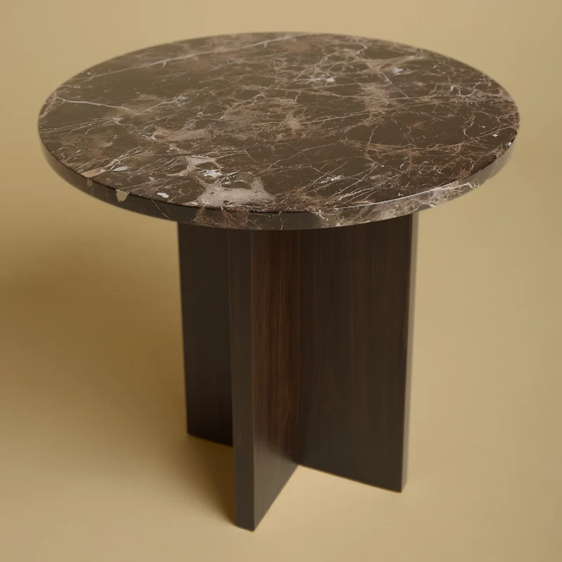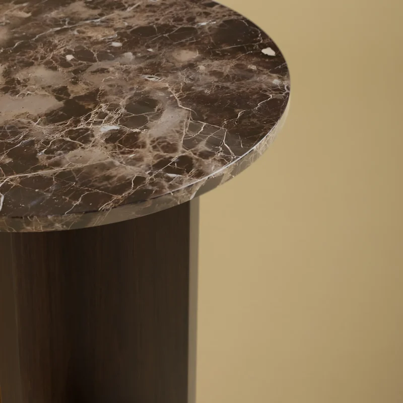 The Sherman Side Table by Lebanto is a luxurious blend of rich textures and refined craftsmanship. Featuring a stunning Dark Emperador marble top and solid oak legs with a sleek smoked brown finish, this side table exudes elegance and sophistication. The deep brown tones of the Emperador marble, with its intricate veining, complement the warm, smoked finish of the oak legs, creating a timeless and versatile design perfect for any living room, bedroom, or office.