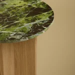 With its high-quality materials and timeless design, this side table is both functional and stylish. The natural texture of the Verde Tifone marble contrasts beautifully with the sleek, minimalist oak legs, making it a versatile addition to contemporary, classic, or modern interiors.