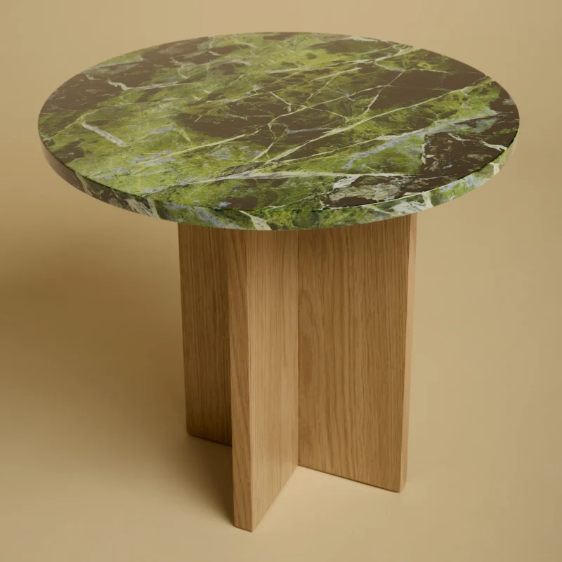 With its high-quality materials and timeless design, this side table is both functional and stylish. The natural texture of the Verde Tifone marble contrasts beautifully with the sleek, minimalist oak legs, making it a versatile addition to contemporary, classic, or modern interiors.