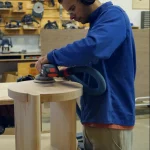 Each piece is constructed entirely from a single offcut sourced from post-production waste in kitchen manufacturing.