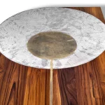 Handcrafted with meticulous attention to detail, the Shilpa Meja derives its name from the Sanskrit term for craftsmanship, “शिल्प मेज़,” reflecting its artistry. The smooth, softened edges cater to the needs of compact living spaces, ensuring both functionality and aesthetic appeal. The diversification of materials on the table’s surface adds a visually dynamic touch while maintaining a sleek, polished finish.