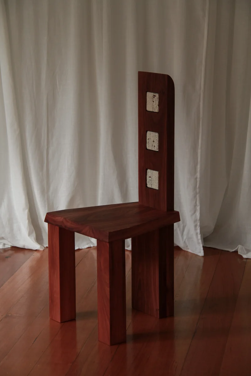 This piece is part of a debut body of work that infuses knit textures with minimalist jarrah timber forms.