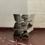 Side Piece is part of Deon Rubi’s ongoing investigation into industrial processes as carriers of emotional meaning. Built from her custom heart-shaped extruded aluminum tubes and solid bars, materials she developed exclusively for this body of work, the piece embeds symbolic form directly into its structure. By using a standardized industrial process to produce a material “made with love,” Rubi blurs the line between functional object and sculptural gesture. Side Piece is the latest iteration in this series and its intended to be used as a side table.