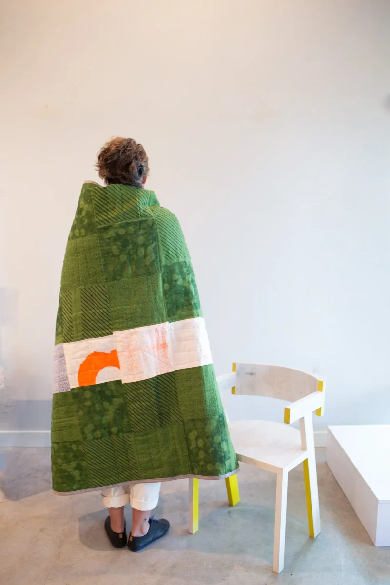 A quilt is a form of communication, the piecing together of images and colors to create a visual story that can also be a source of comfort in a home. On Urbs Studio’s daily walks, the designers are constantly seeking inspiration from the world around them. This textile piece was specifically inspired by the overgrown wildflowers on an urban trail during springtime. “Looking down while walking” is the overarching theme, making the seemingly mundane and ordinary things observed special.