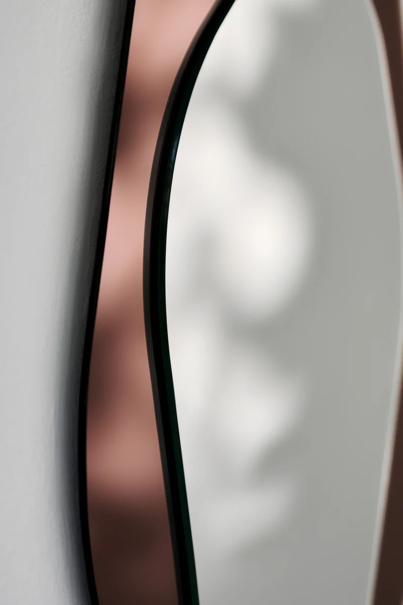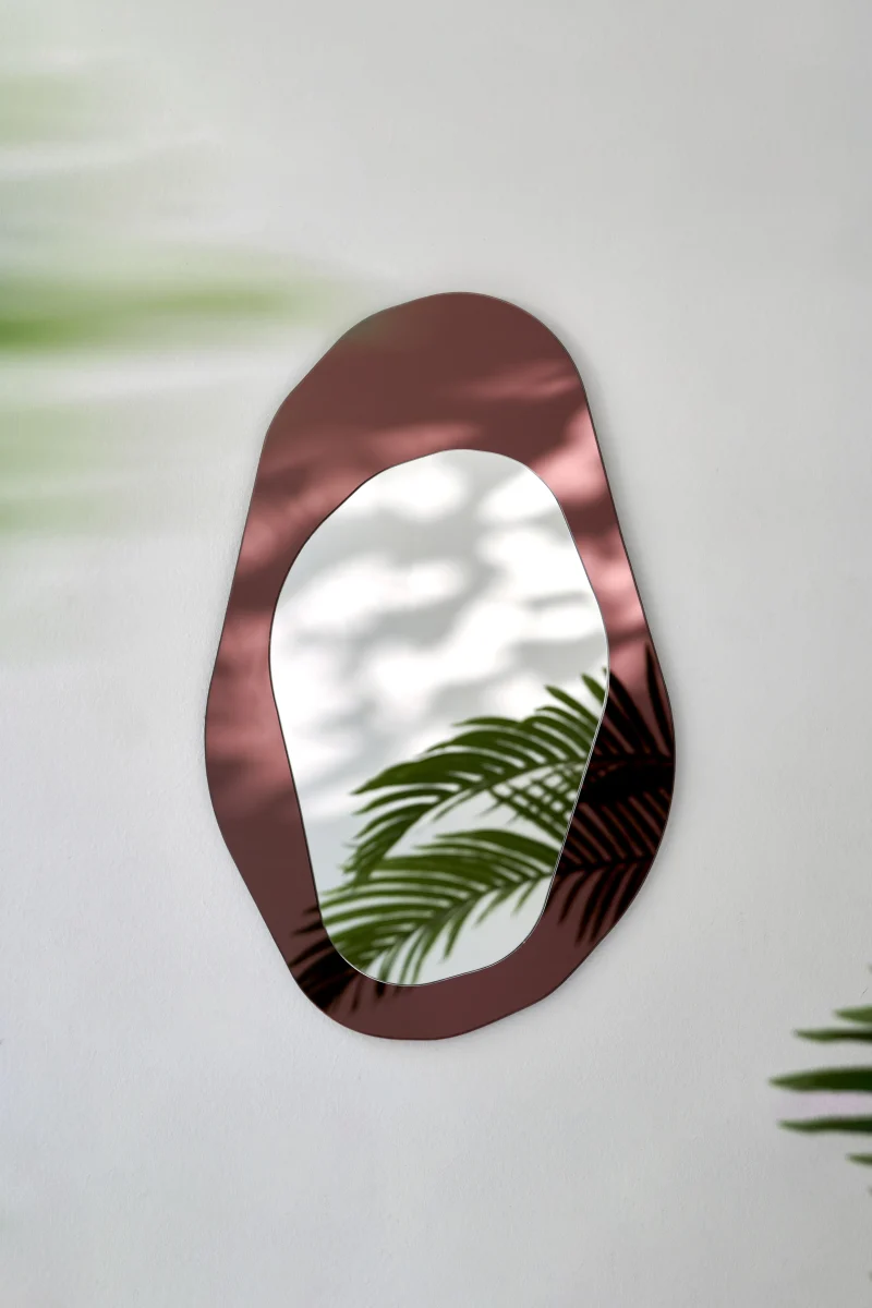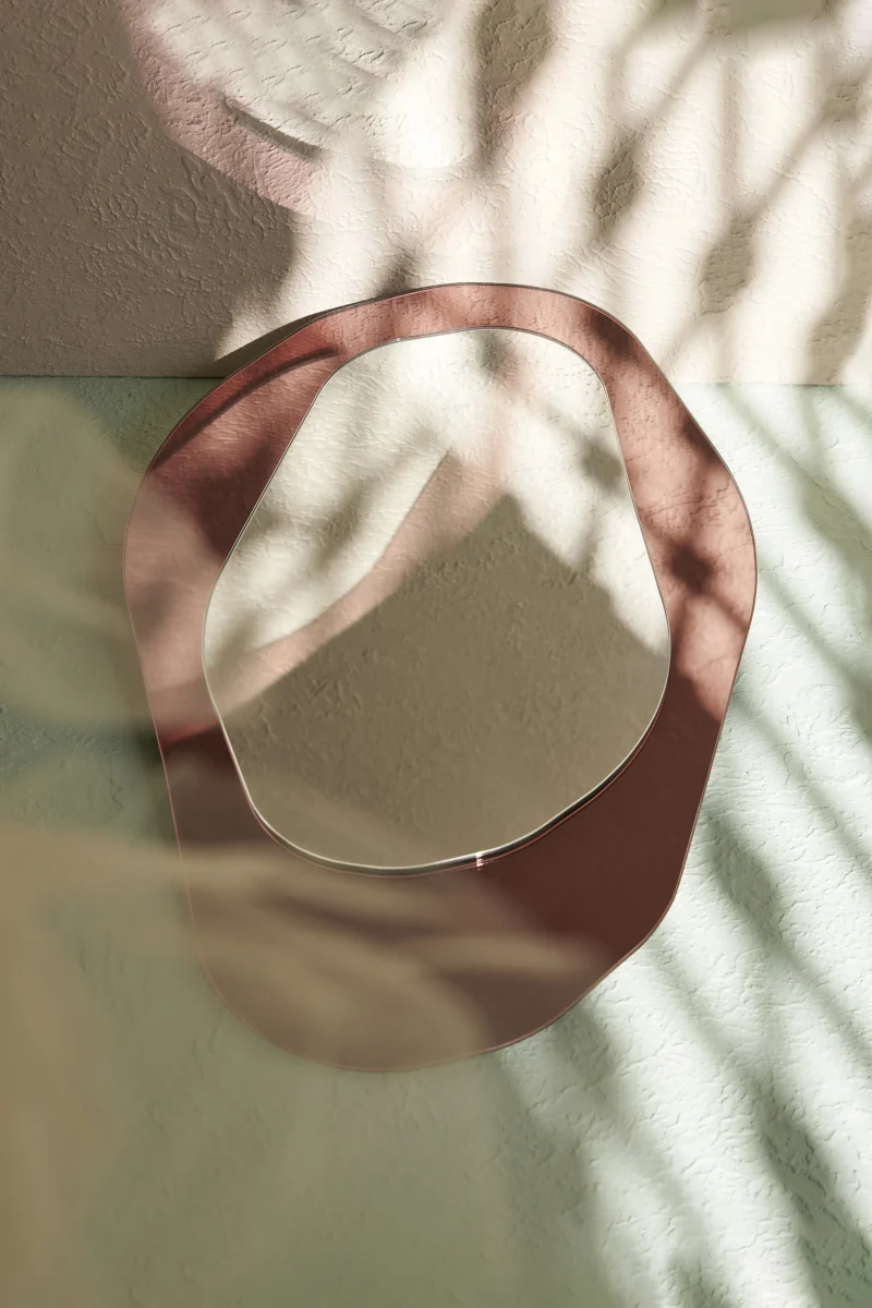 With its simple and organic form, the ‘Siena’ asymmetric mirror by Yugen Lab adds a unique elegance to your living spaces. It is crafted using rose gold mirror and plain mirror.