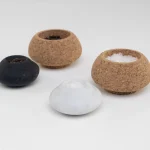 The choice of cork as a material for the vessel was made with its moisture wicking properties in mind. It was vaguely modelled after the shapes of antique briquetage evaporation vessels used to make salt and the shapes of underground silos, resulting in a modular language that facilitates the stacking and storing of the vessels and their use for different contents.
