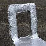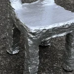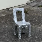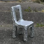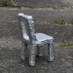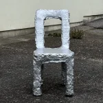 Upcycled, silver, fully functional, handmade chair by David Čáp, with a square shape made of shredded paper. Despite the unconventional material, it has sufficient load capacity (100 kg) and is easy to wash.