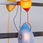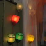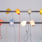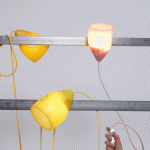 SIMA is a lamp, cast from pigmented silicone. Ring magnets, molded into the three flat surfaces allow the lamp to be fixed to any metal surface. It comes with two metal plates that can be drilled into a wall or glued to a smooth surface. It glows through a dimmable LED light bulb.